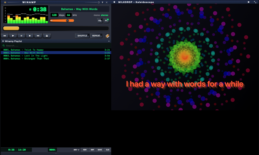 Meanwhile... seeing the lyrics in that shot makes me wonder if WinAmp supports karaoke playback...